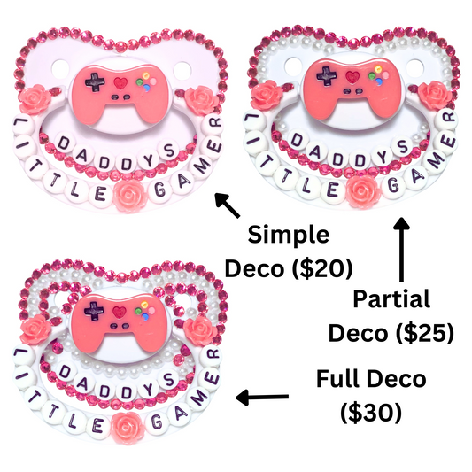 Baby Bear Pacis Adult Pacifier "Daddy's Little Gamer" White Light Pink Adult Paci (DDLG/ABDL)