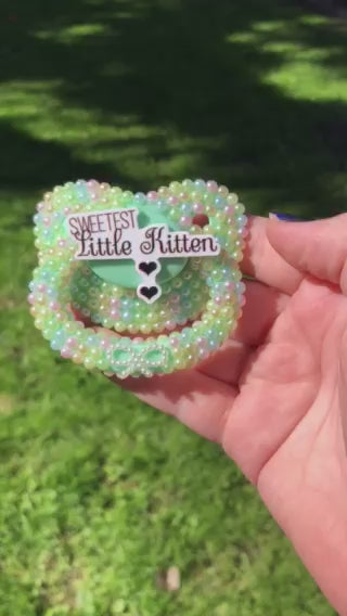 Baby Bear Pacis Adult Pacifier "Sweetest Little Kitten" Green Adult Paci (DDLG/ABDL)