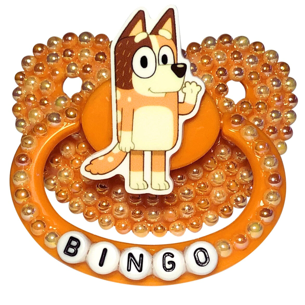 Adult Pacifier Baby Bear Pacis "Bingo" Orange Adult Pacifier, Orange Flatback AB Pearls, (DDLG, ABDL, Age Regression, Little Space)