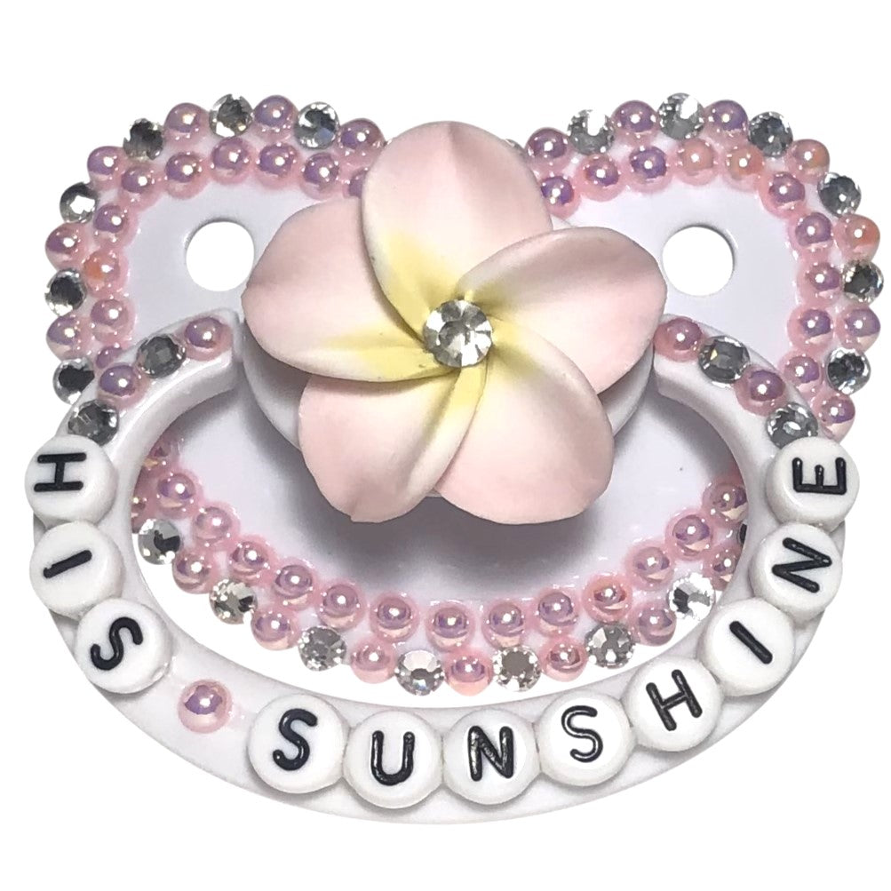 Adult Pacifier Baby Bear Pacis "His Sunshine" White Adult Pacifier, Pink Flatback Pearls, Silver Rhinestones (DDLG, ABDL, Age Regression, Little Space)