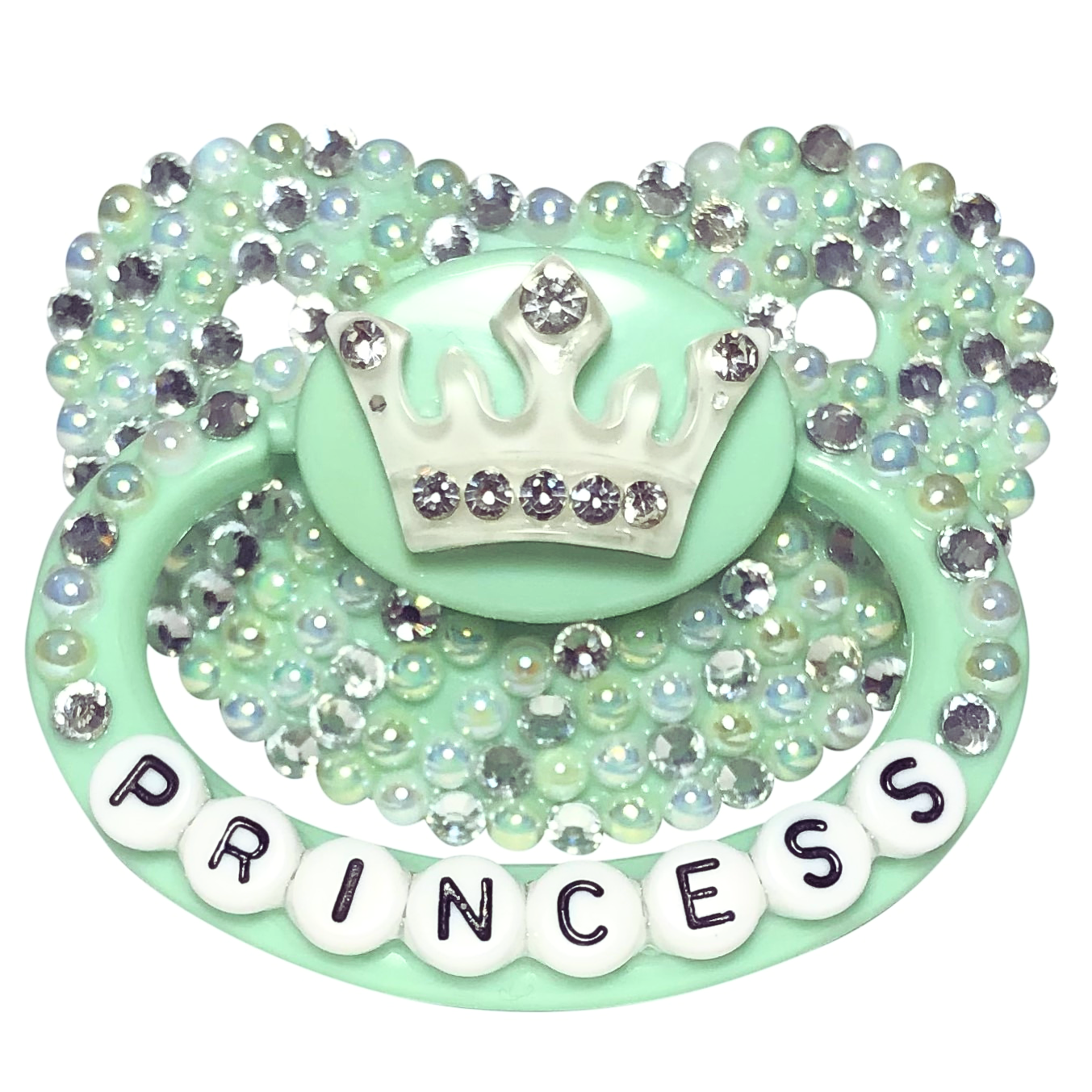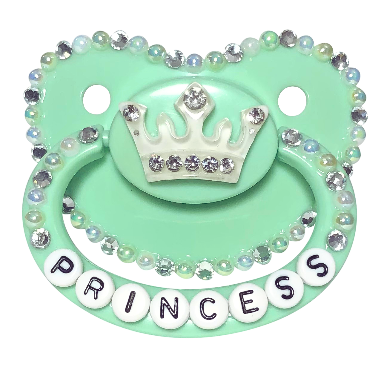 Adult Pacifier Baby Bear Pacis "Princess" Green Adult Pacifier, Green and White Flatback Pearls, Diamond Rhinestones (DDLG, ABDL, Age Regression, Little Space)