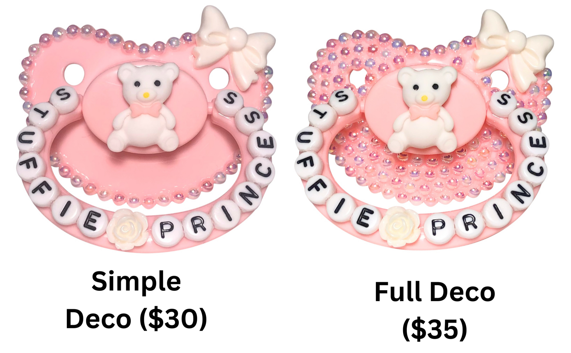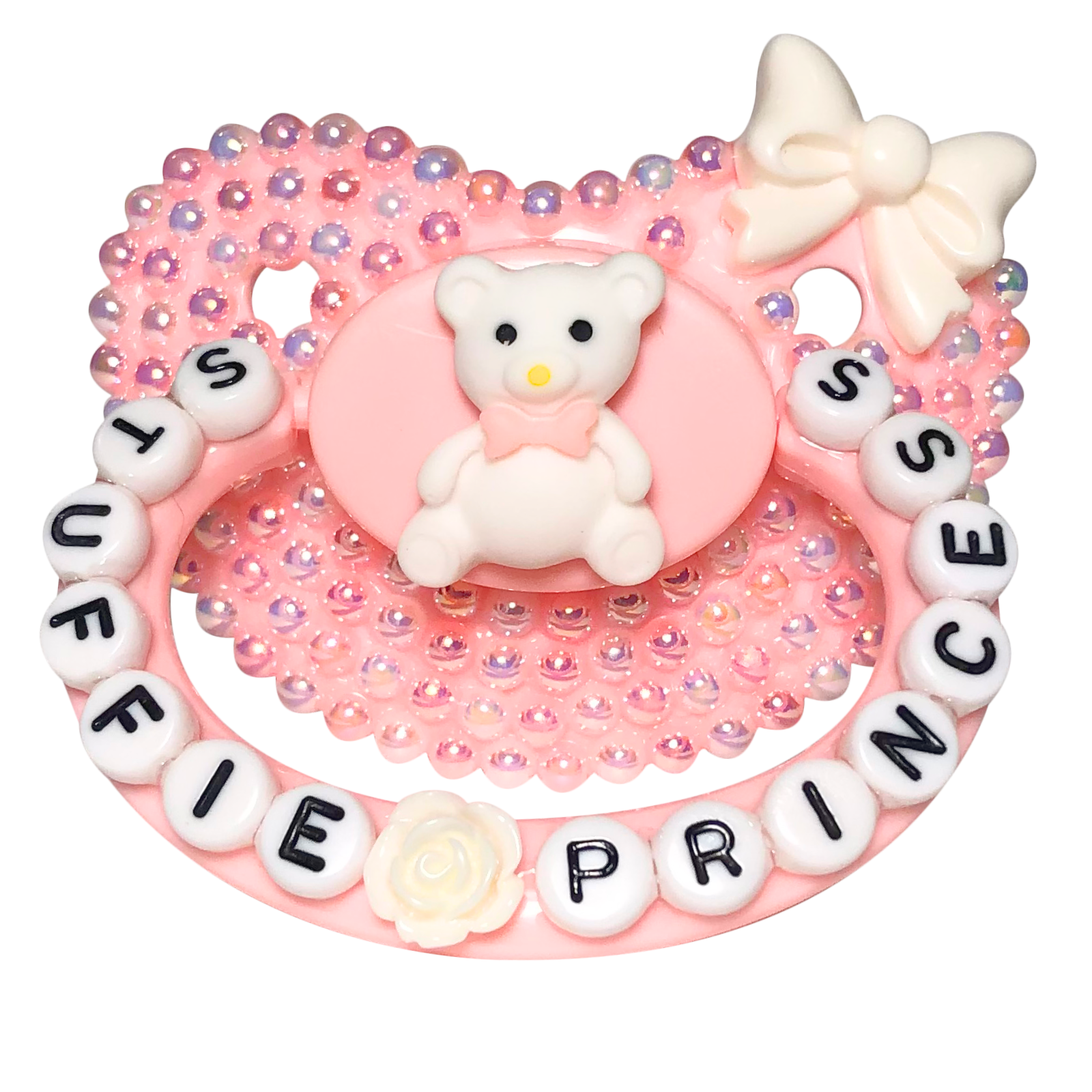 Adult Pacifier Baby Bear Pacis "Stuffie Princess" Pink Adult Pacifier, White and Pink Flatback Pearls (DDLG, ABDL, Age Regression, Little Space)