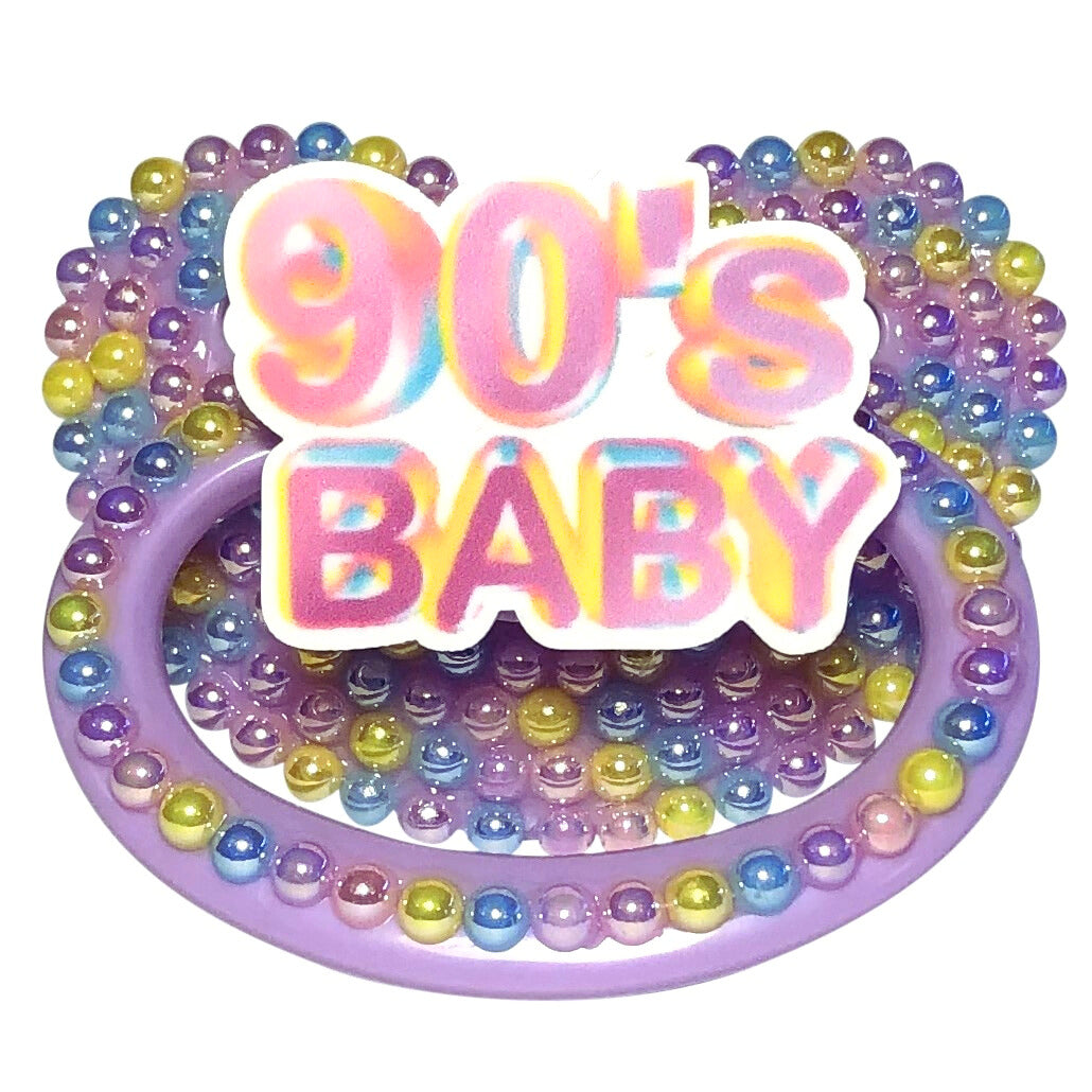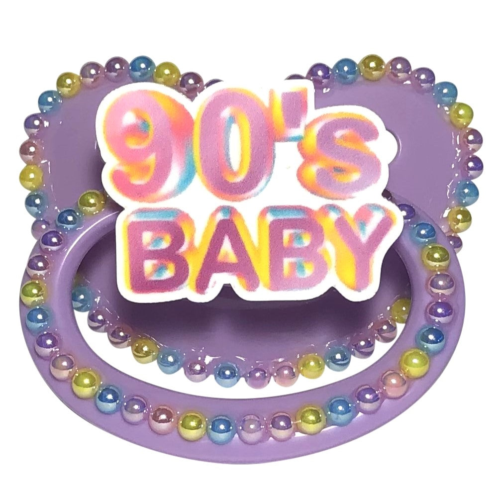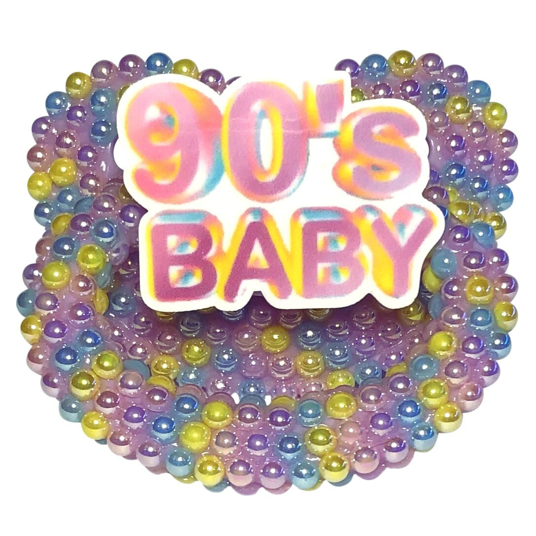 Adult Pacifier Baby Bear Pacis "90's Baby" Purple Adult Pacifier, Yellow, Pink, Purple, and Blue Flatback AB Pearls, (DDLG, ABDL, Age Regression, Little Space)
