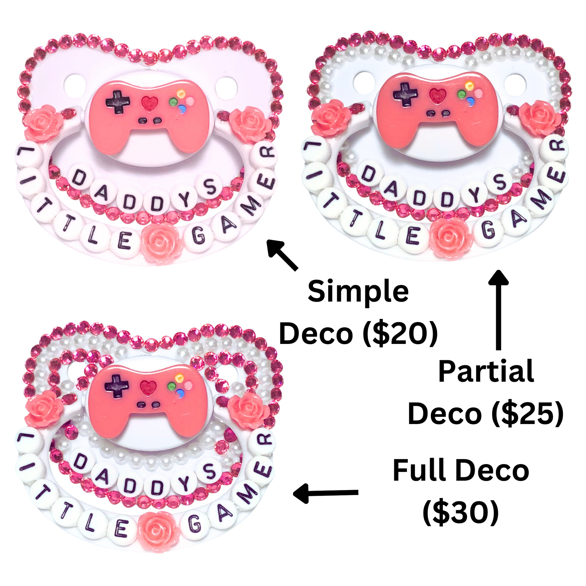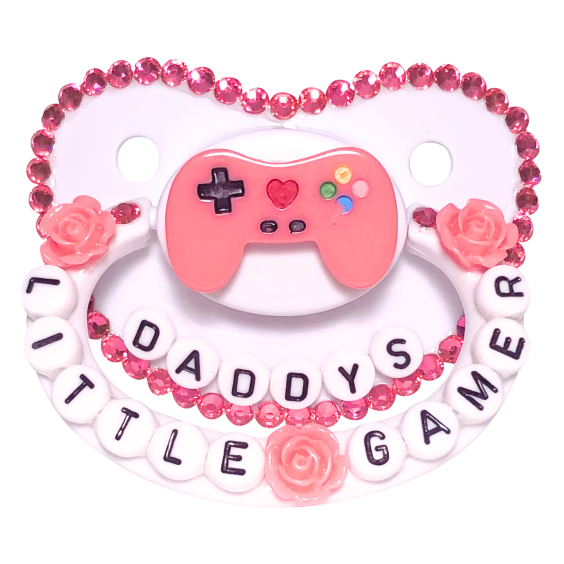 Baby Bear Pacis Adult Pacifier "Daddy's Little Gamer" White Dark Pink Adult Paci (DDLG/ABDL)