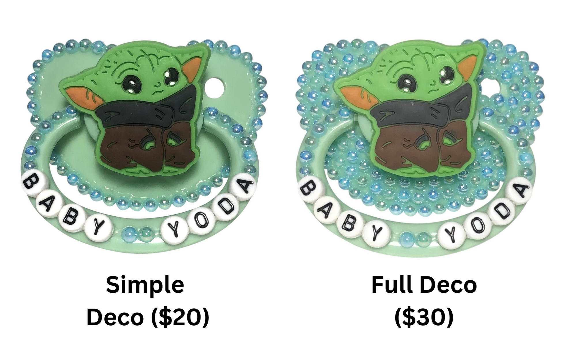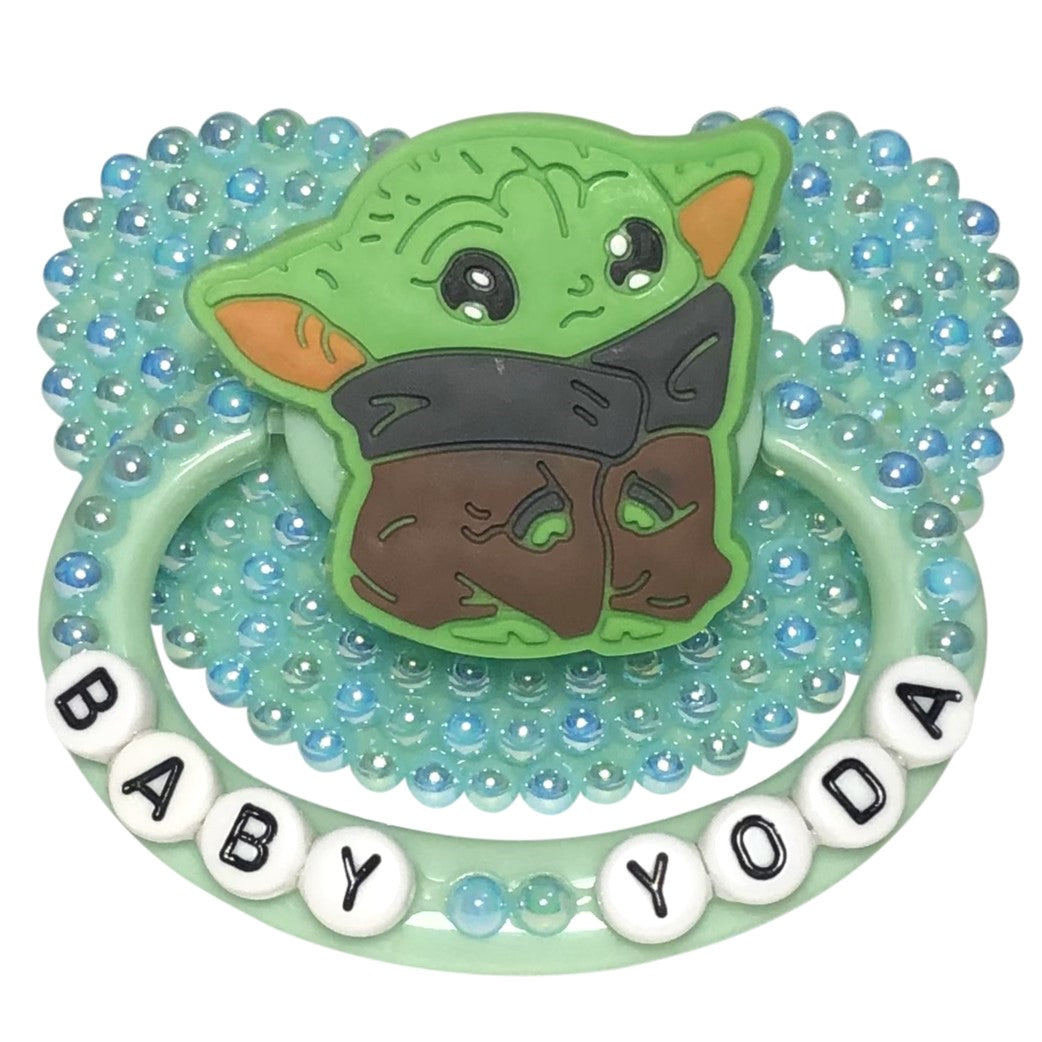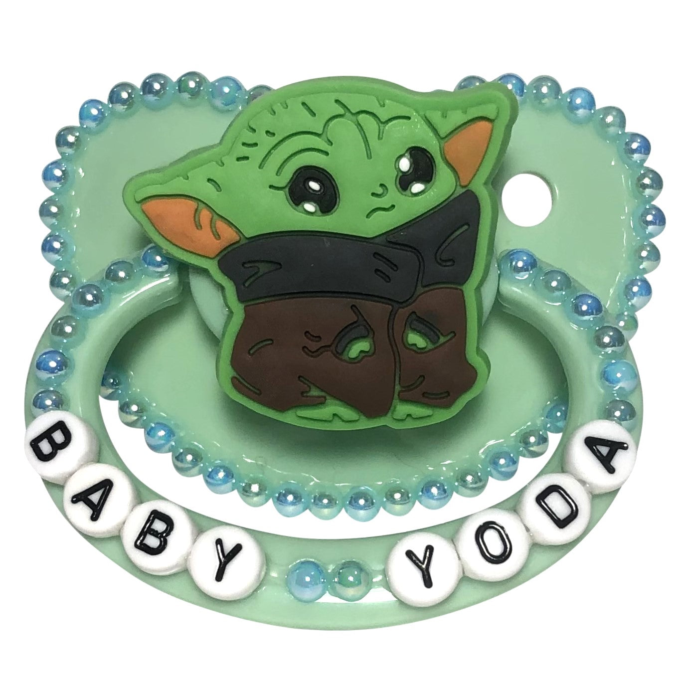 Adult Pacifier Baby Bear Pacis "Baby Yoda" Green Adult Pacifier, Blue-Green and Green Flatback AB Pearls, (DDLG, ABDL, Age Regression, Little Space)
