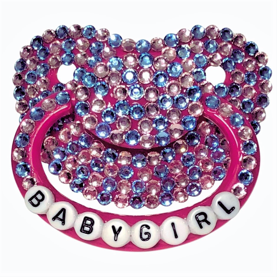 Adult Pacifier Baby Bear Pacis "Babygirl" Dark Pink Adult Pacifier, Blue and Pink Rhinestones (DDLG, ABDL, Age Regression, Little Space)