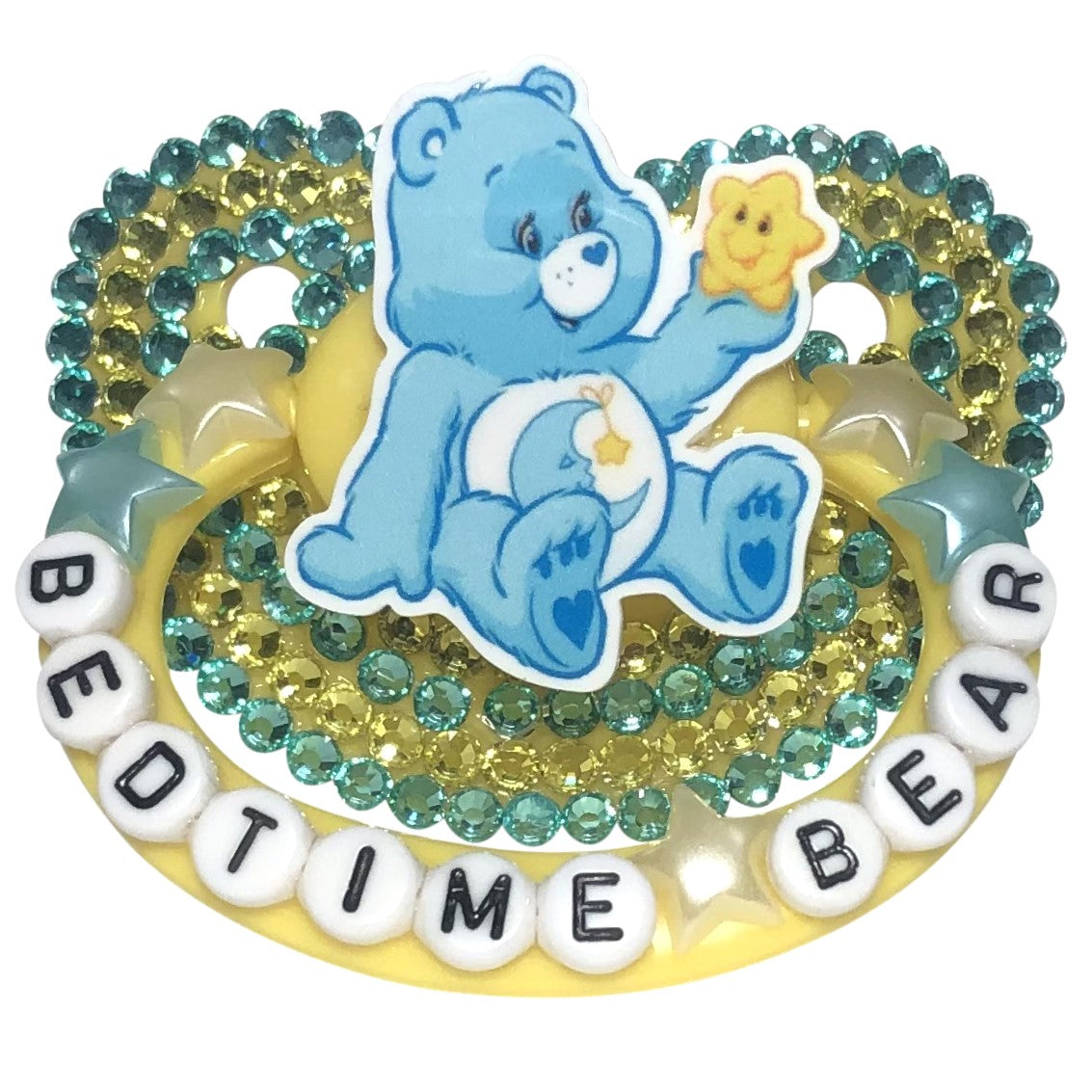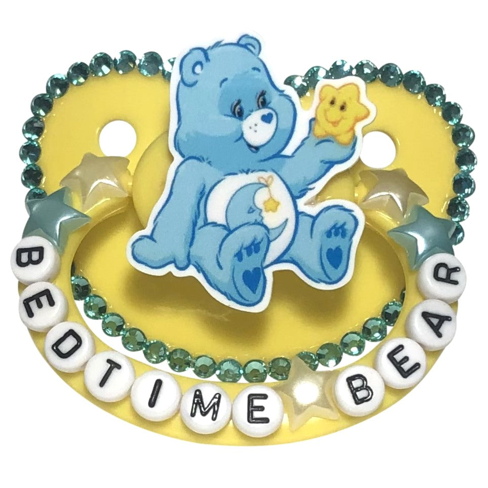 Adult Pacifier Baby Bear Pacis "Bedtime Bear" Yellow Adult Pacifier, Blue and Yellow Flatback Rhinestones, (DDLG, ABDL, Age Regression, Little Space)