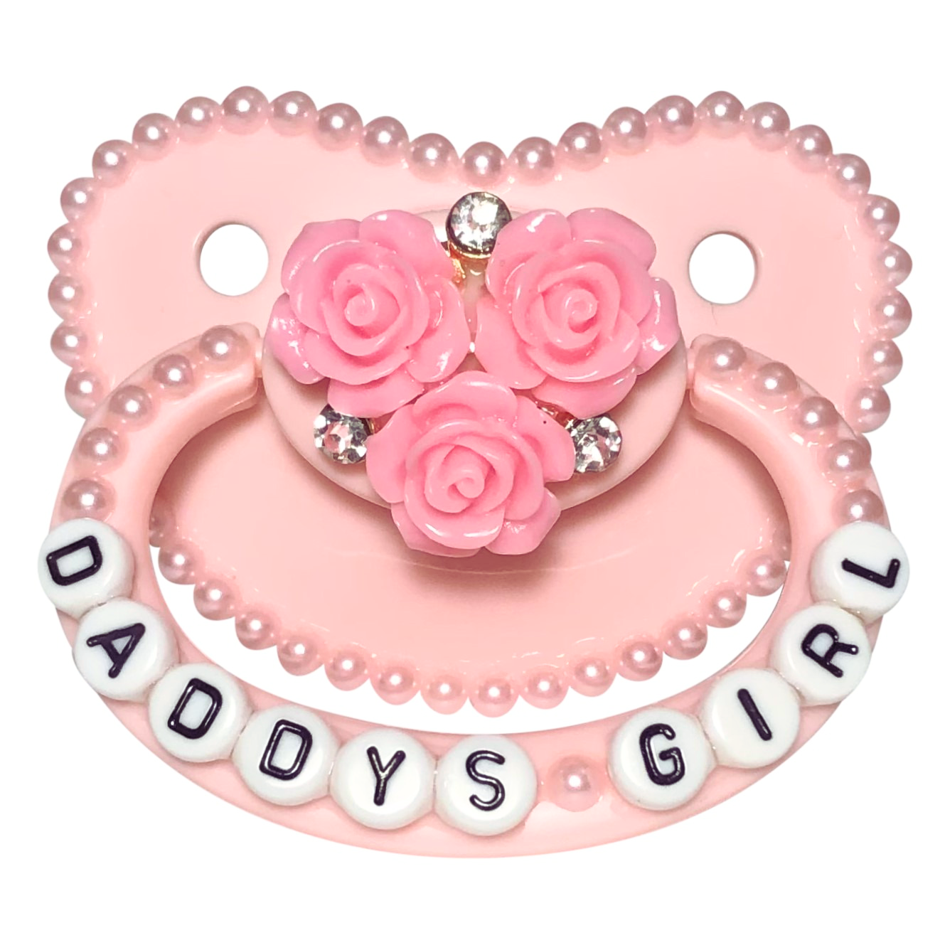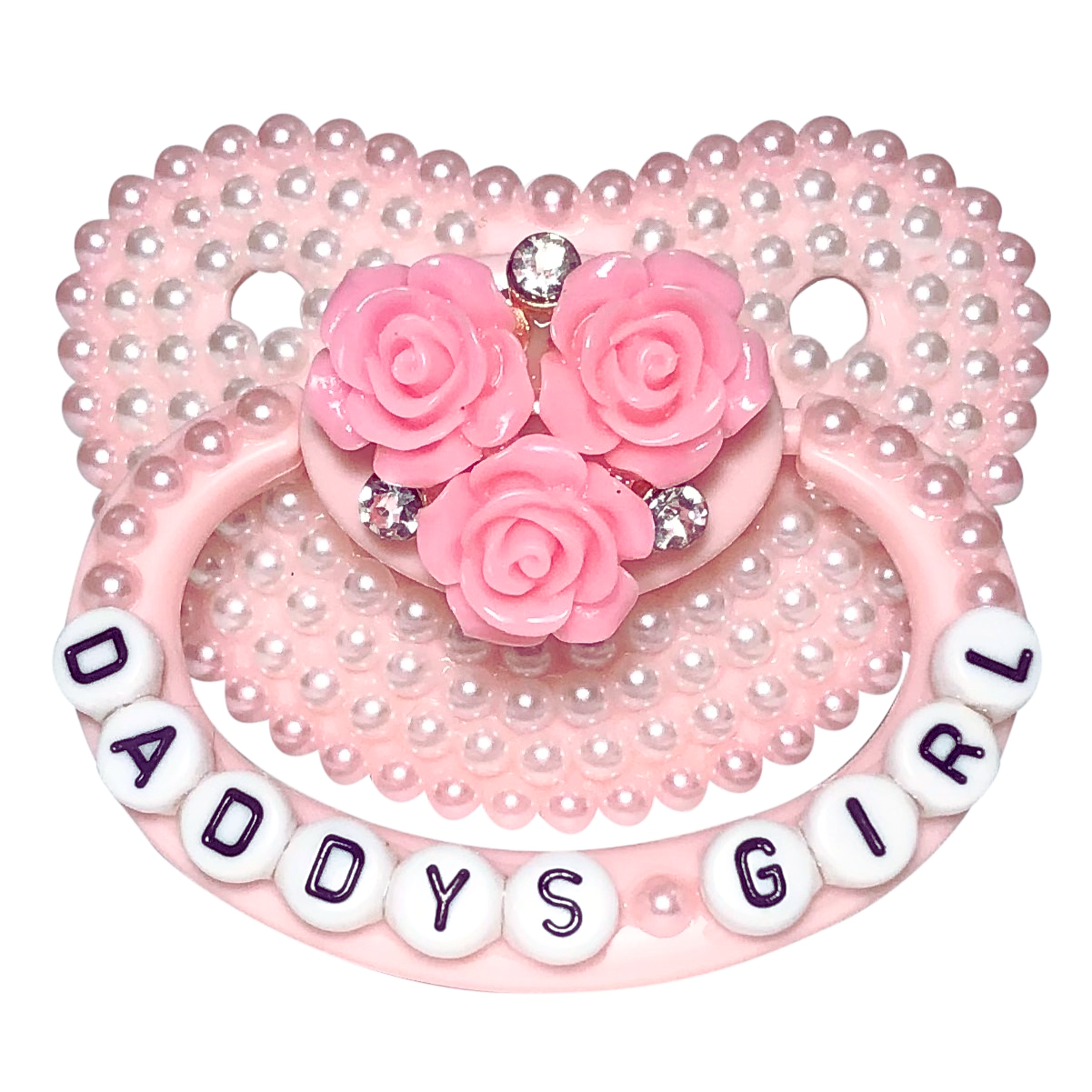 Adult Pacifier Baby Bear Pacis "Daddy's Girl" Pink Adult Pacifier, Purple, White and Pink Flatback Pearls, (DDLG, ABDL, Age Regression, Little Space)