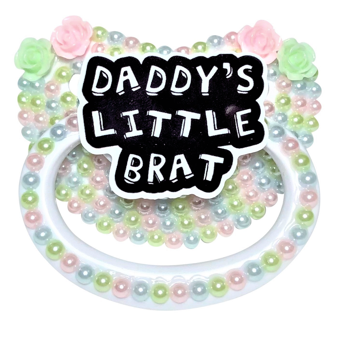 Adult Pacifier Baby Bear Pacis "Daddy's Lil Brat" White Adult Pacifier, Pale Blue, Light Green, and Light Pink Flatback Pearls (DDLG, ABDL, Age Regression, Little Space)