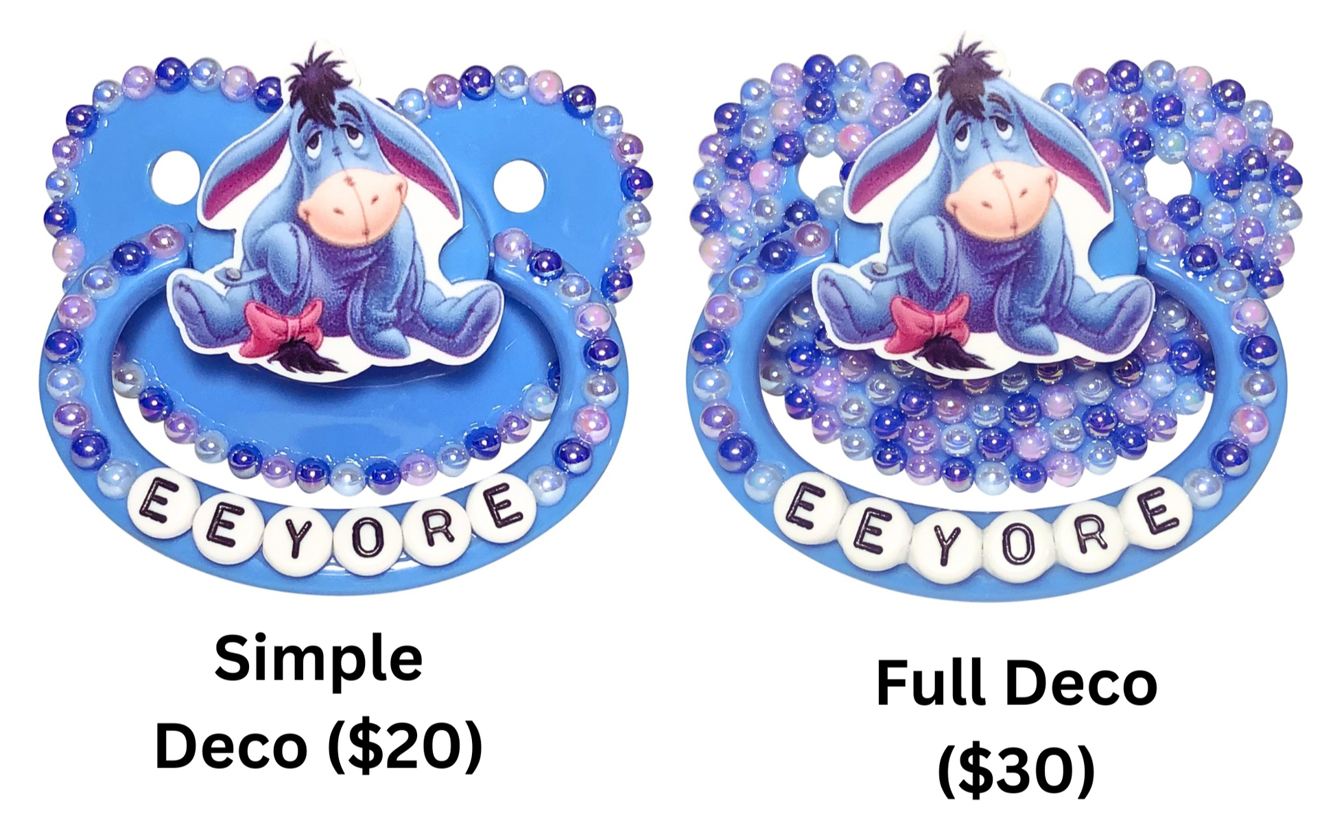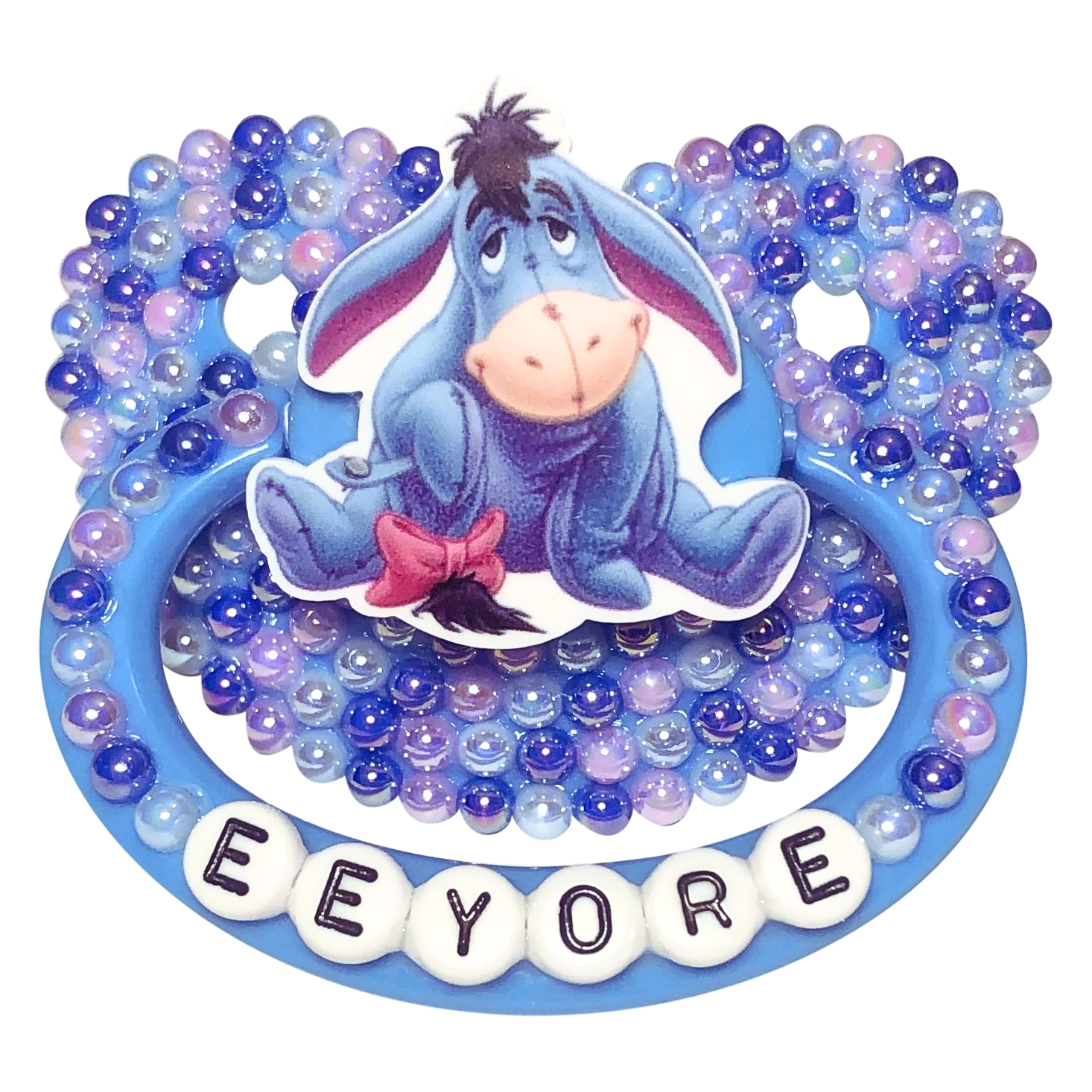 Adult Pacifier Baby Bear Pacis "Eeyore" Blue Adult Pacifier, Purple, Dark Blue, and Dusty Blue Flatback AB Pearls, (DDLG, ABDL, Age Regression, Little Space)
