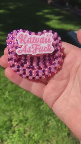 Adult Pacifier Baby Bear Pacis "Kawaii As Fuck" Pink Adult Pacifier, Pink Flatback Pearls, Purple Rhinestones (DDLG, ABDL, Age Regression, Little Space)
