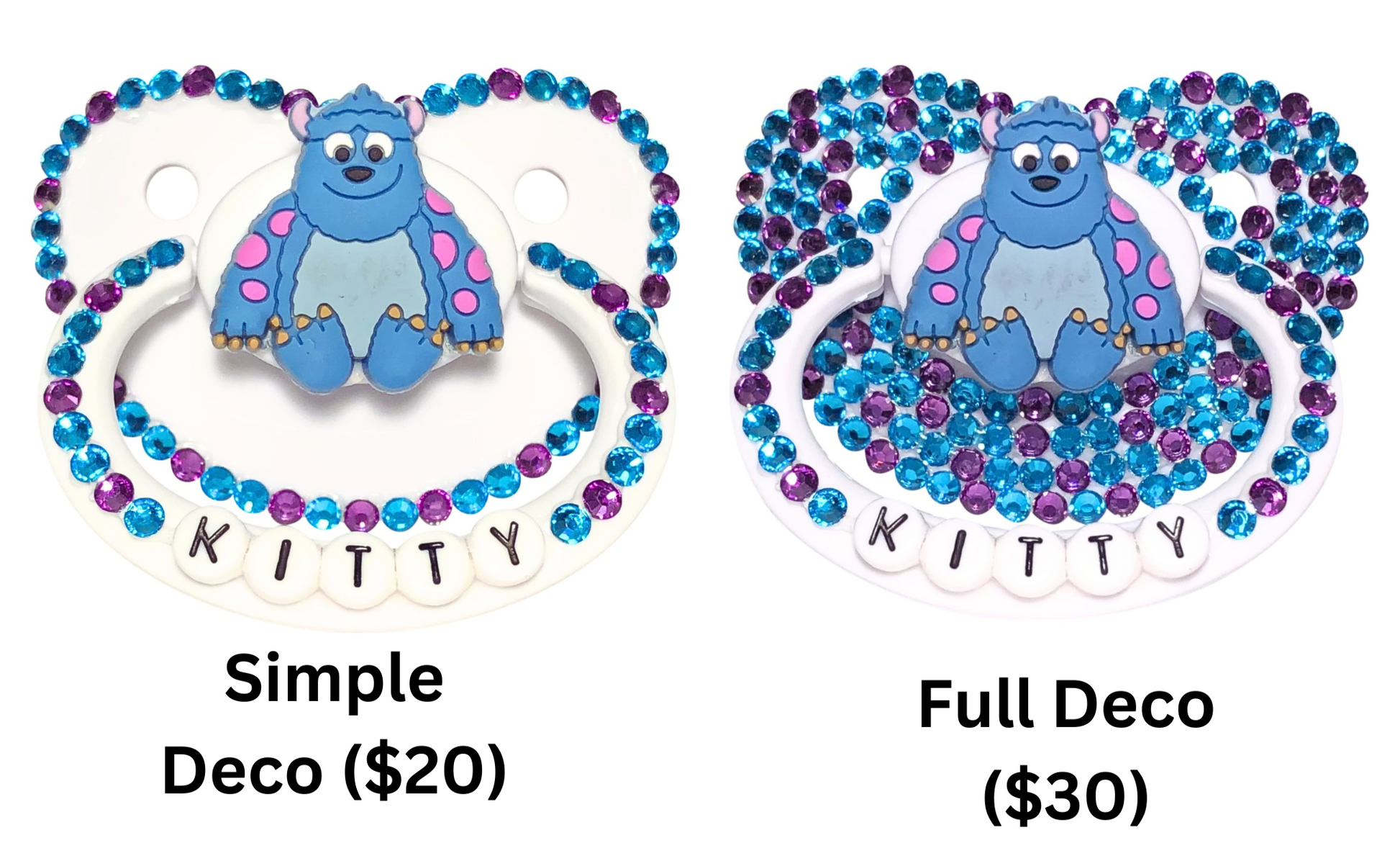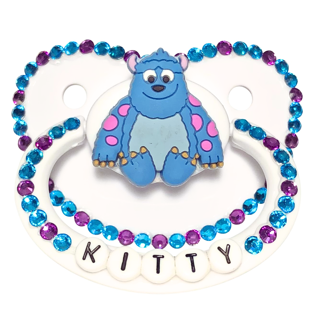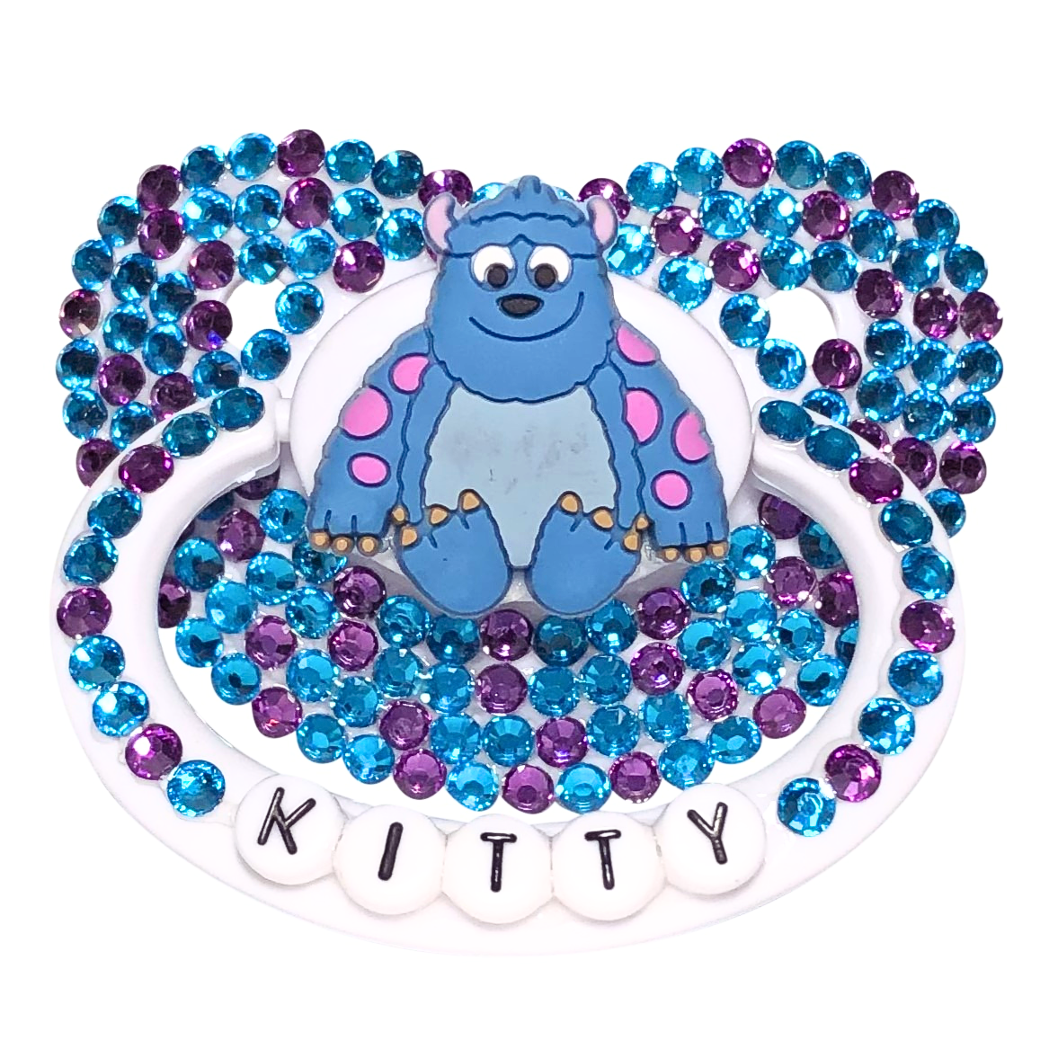 Adult Pacifier Baby Bear Pacis "Kitty" White Monster's Inc. Adult Pacifier, Blue, and Purple Rhinestones (DDLG, ABDL, Age Regression, Little Space)
