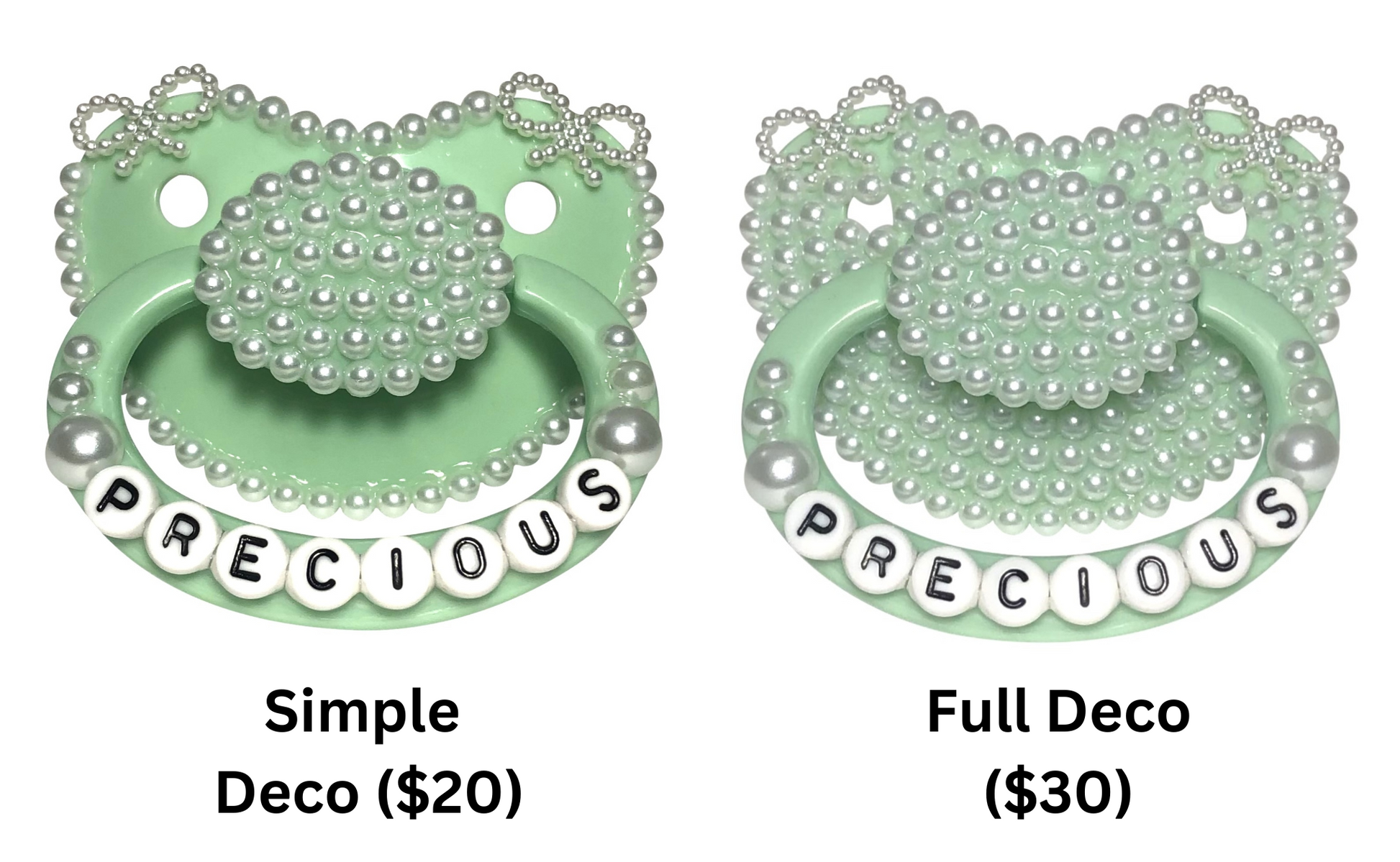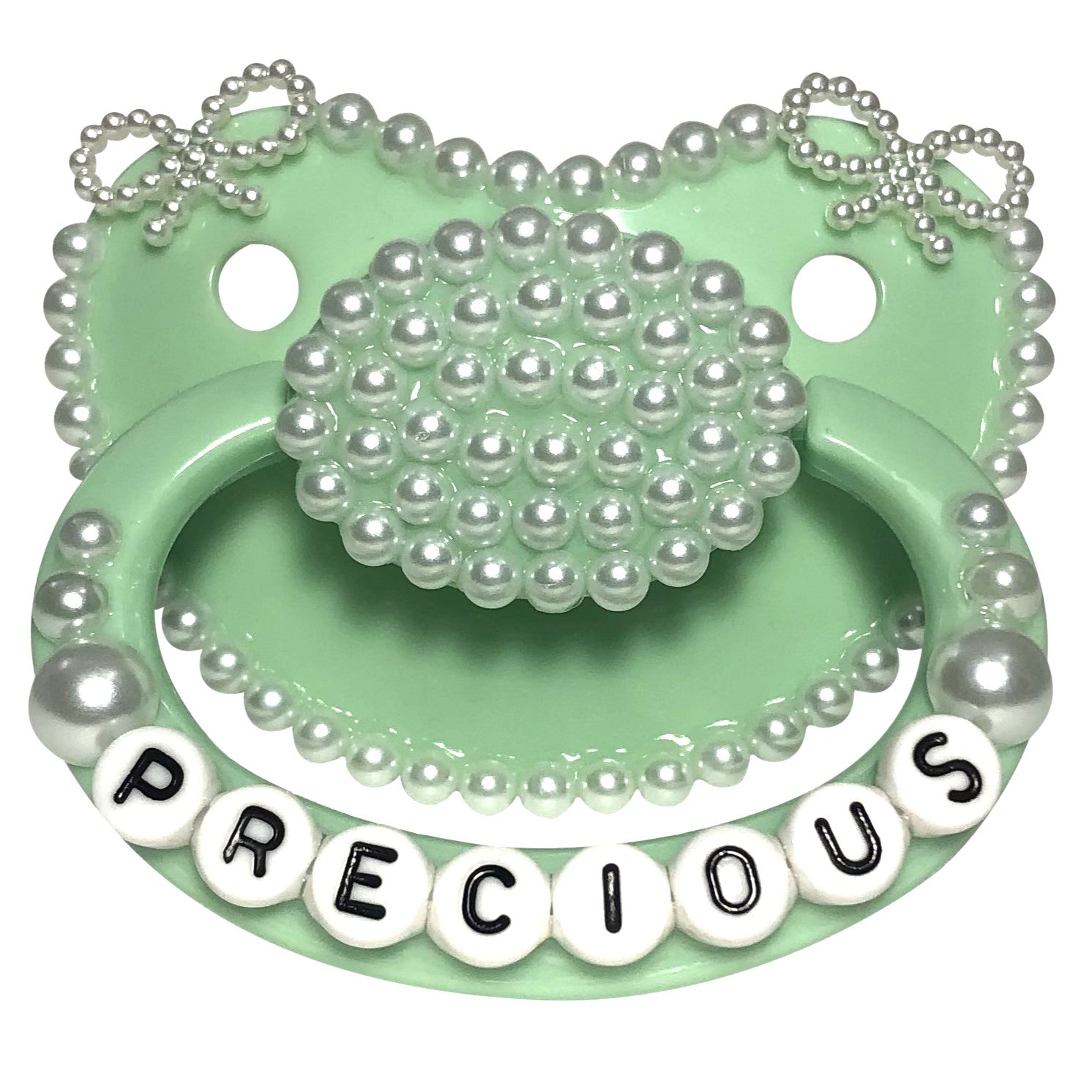 Adult Pacifier Baby Bear Pacis "Precious" Green Adult Pacifier, White Flatback Pearls, Resin Bows (DDLG, ABDL, Age Regression, Little Space)