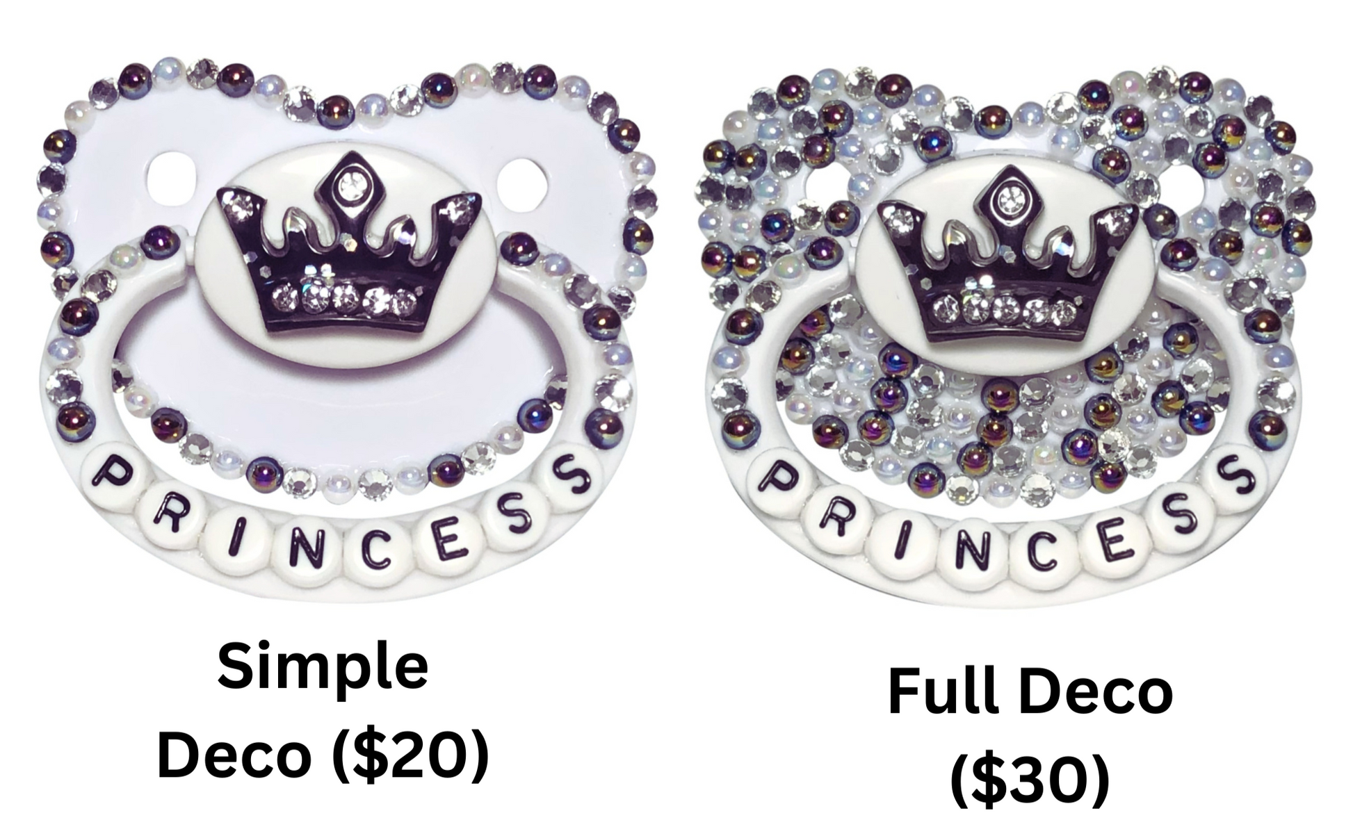 Baby Bear Pacis Adult Pacifier "Princess" White Black Adult Paci (DDLG/ABDL)