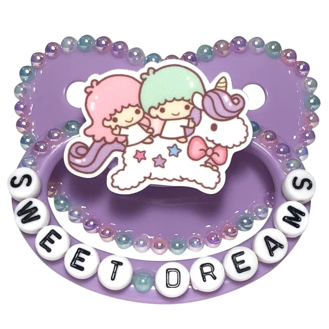 Adult Pacifier Baby Bear Pacis "Sweet Dreams" Purple Little Twin Stars Adult Pacifier, Blue-Green, Pink, Purple, and White Flatback AB Pearls, (DDLG, ABDL, Age Regression, Little Space)