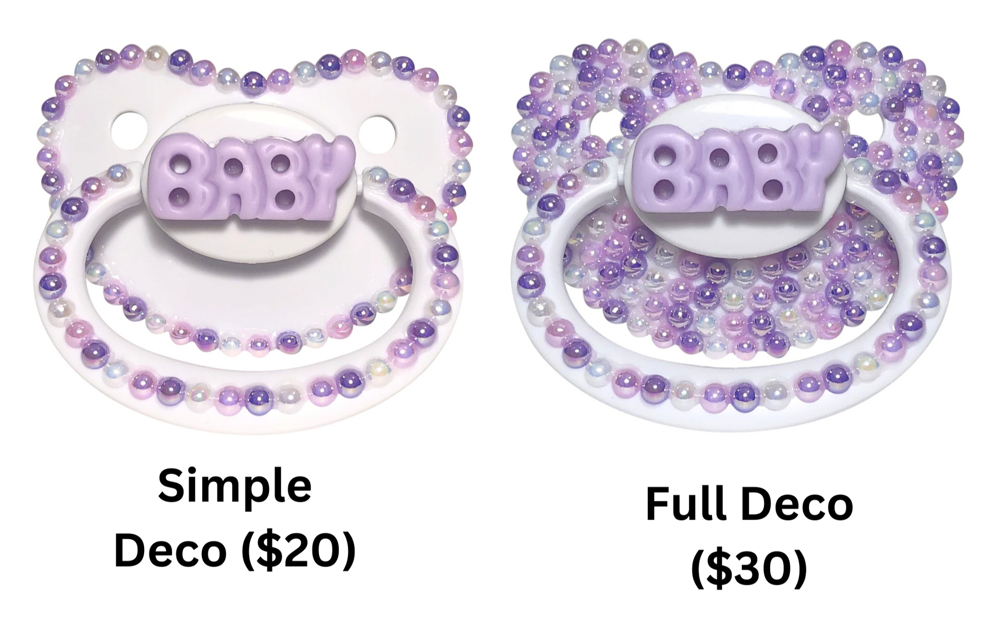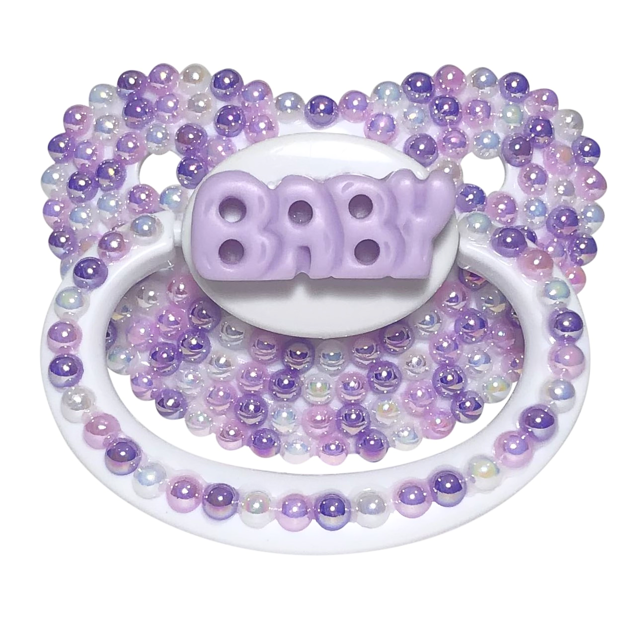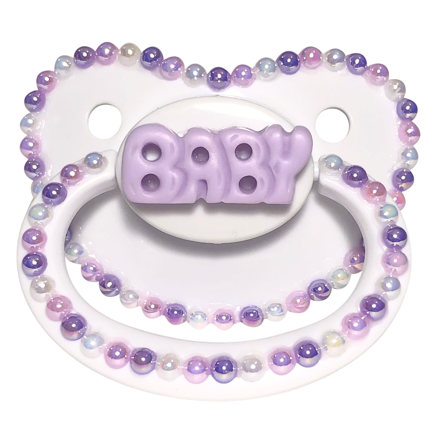 Adult Pacifier Baby Bear Pacis "Baby" White Adult Pacifier, Blue, Green, and Pink Flatback Pearls (DDLG, ABDL, Age Regression, Little Space)
